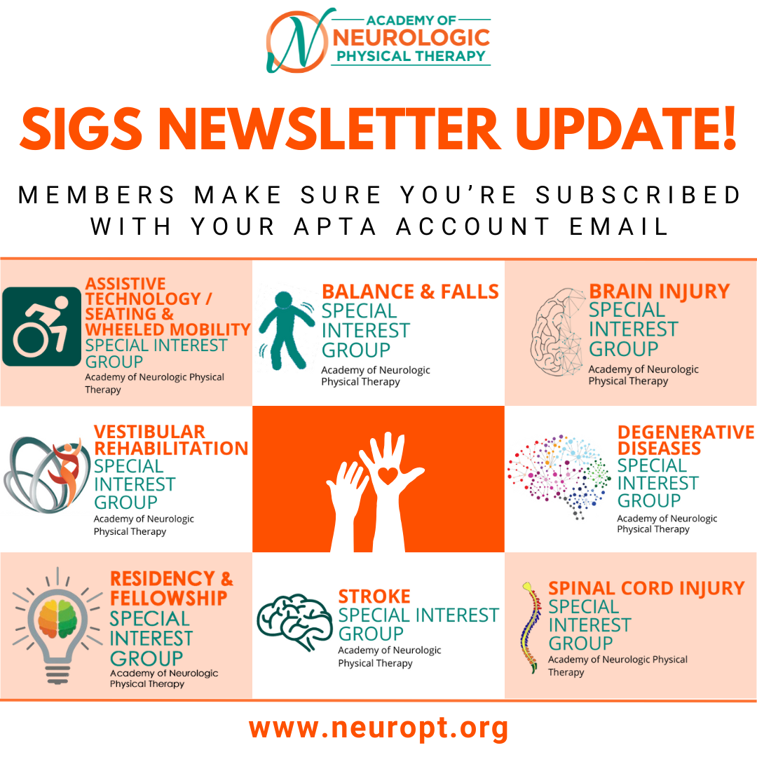 SIG Newsletter Update! We’ve completed our SIG newsletter list cleanup to ensure only current ANPT members stay subscribed. To avoid being removed in the future, please make sure you’re using the email linked to your APTA account when signing up for SIG newsletters.